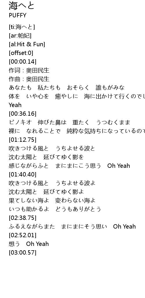 | [02:24.92] | 果てしない海よ 変わらない海よ |