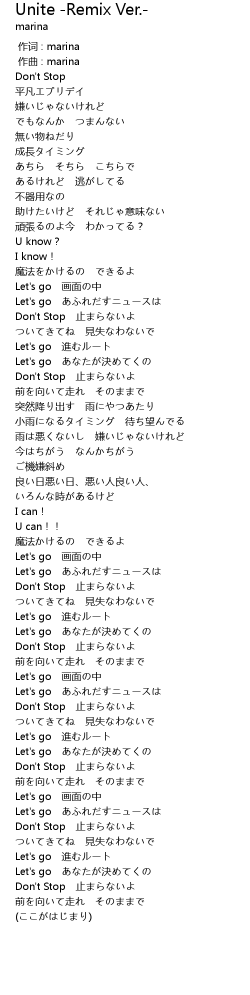 Unite -Remix Ver.- Lyrics