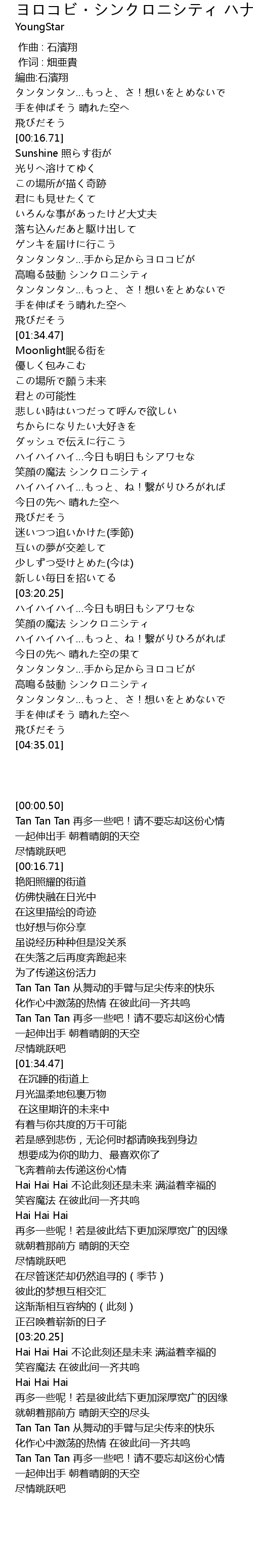 | [04:12.44] | 高鳴る鼓動 シンクロニシティ |