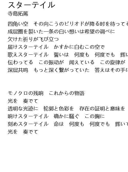 | 歌えスターテイル 誓いは 何度も 何度でも 辉いて | |