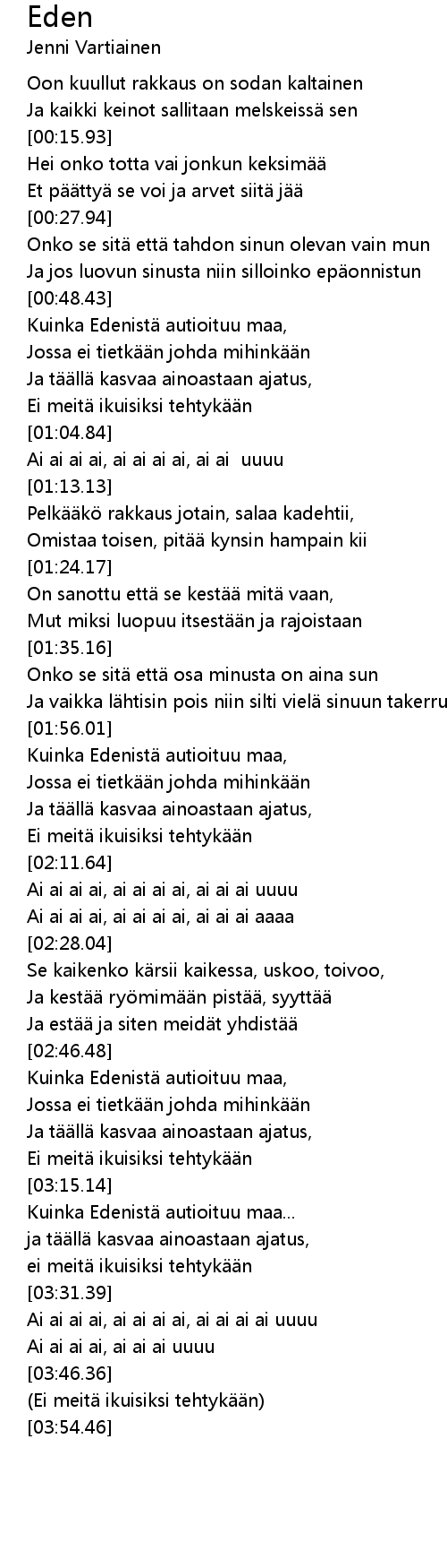 | [03:16.32] | Kuinka Edenist autioituu maa... |