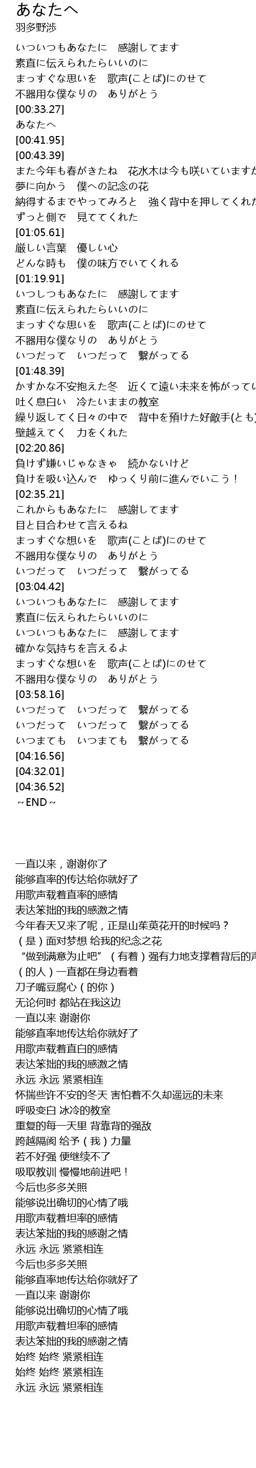 | [03:26.51] | いついつもあなたに 感謝してます |