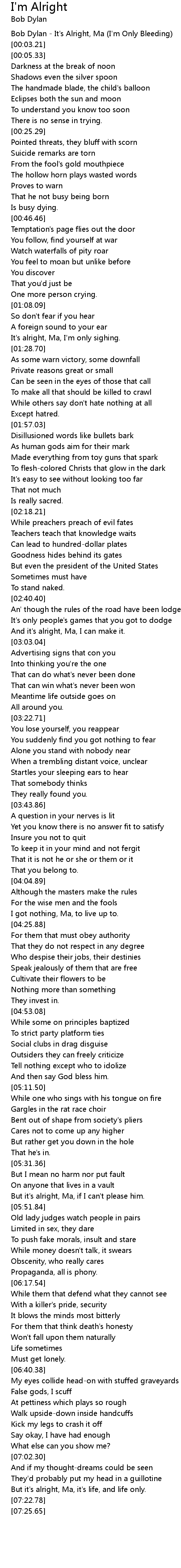 Bob Dylan - It's Alright, Ma (I'm Only Bleeding) |