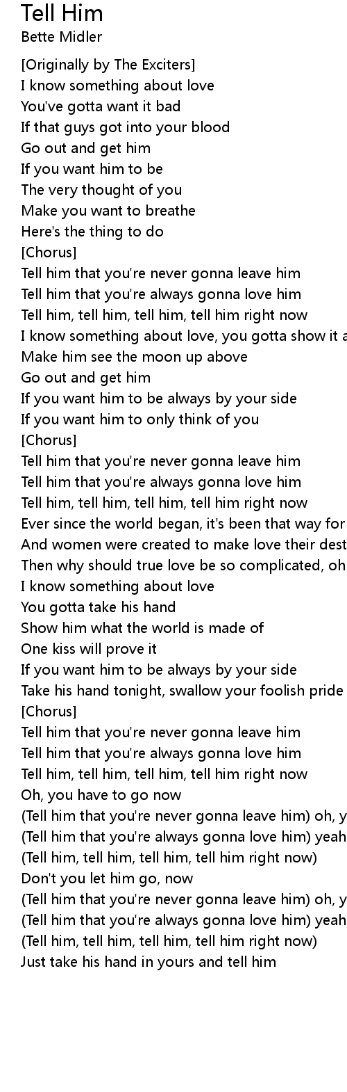 Tell him that you're never gonna leave him |