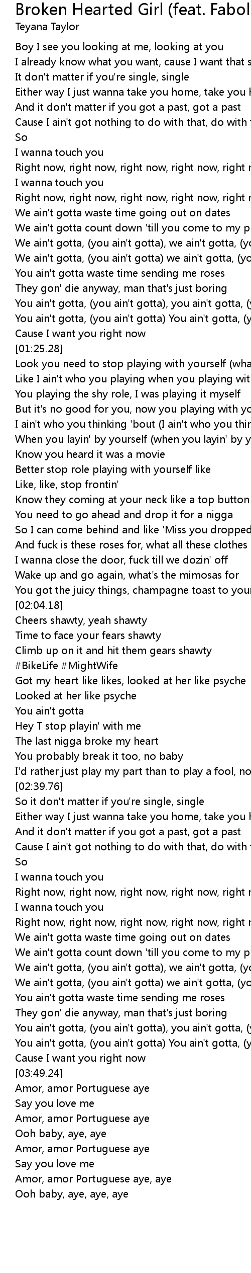 Broken Hearted Girl (feat. Fabolous) Lyrics