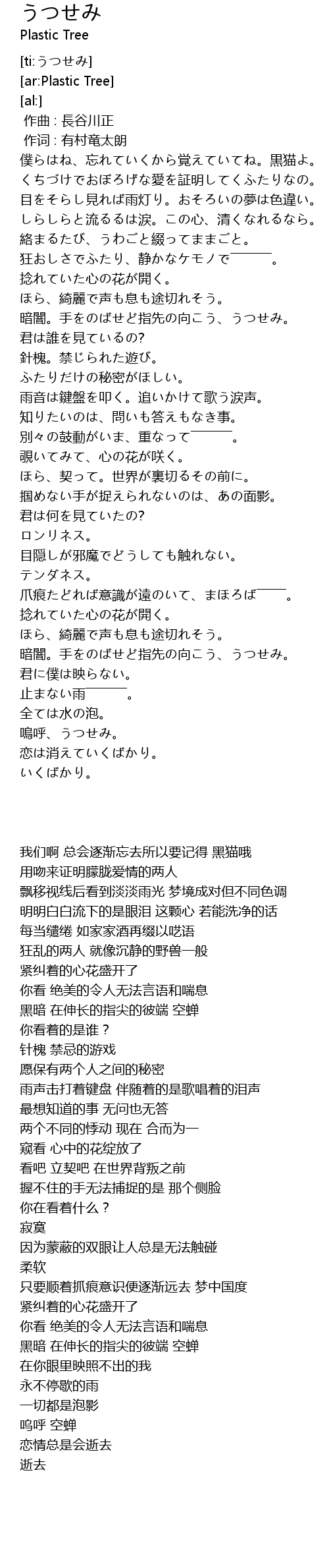 | [04:27.22] | 嗚呼、うつせみ。 |