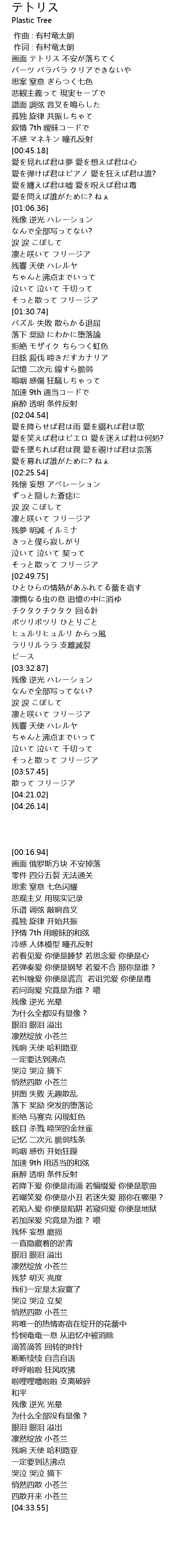 | [00:37.45] | 孤独 旋律 共振しちゃて |