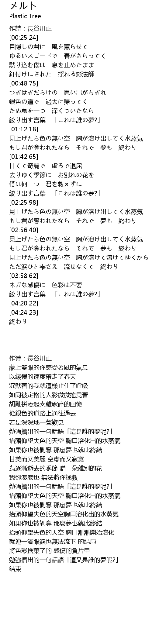 | [04:13.86] | 絞り出す言葉 「これは誰の夢?」 |