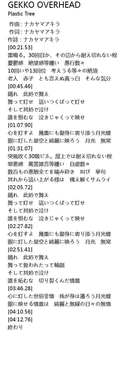 | [00:17.53] | 作詩:ナカヤマアキラ |