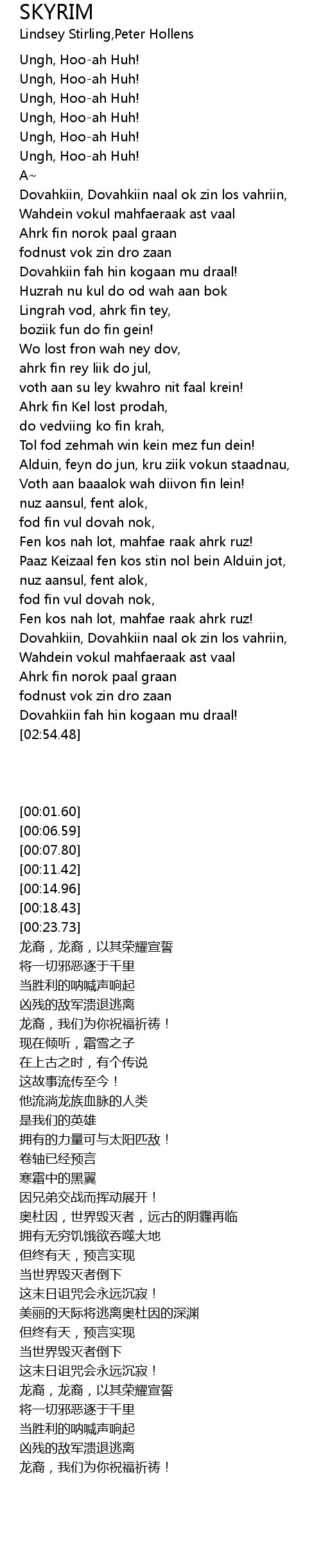 Dovahkiin, Dovahkiin naal ok zin los vahriin, |
