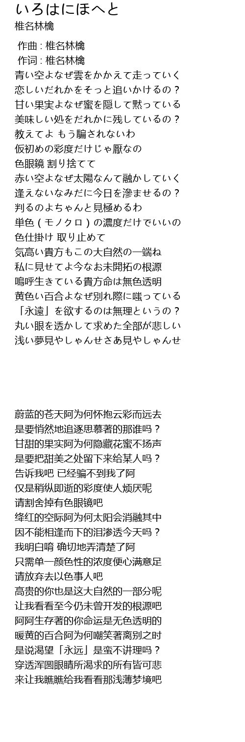 | [00:01.00] | 作词 : 椎名林檎 |