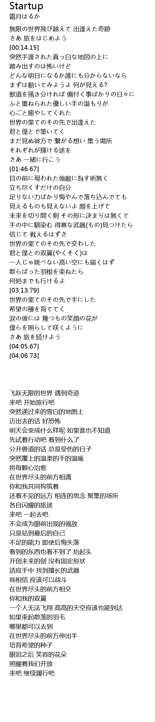 | [00:00.58] | 無限の世界飛び越えて 出逢えた奇跡 |