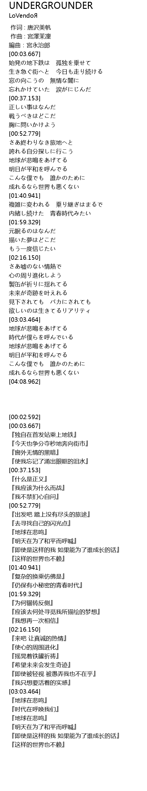 | [00:19.071] | 始発の地下鉄は 孤独を乗せて |