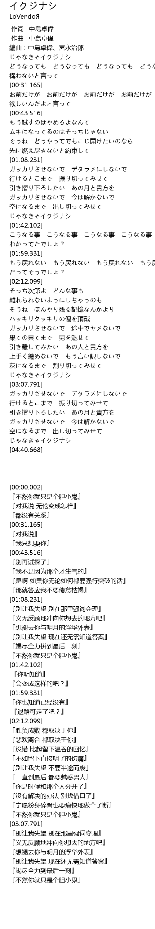 | [03:03.469] | じゃなきゃイクジナシ |
