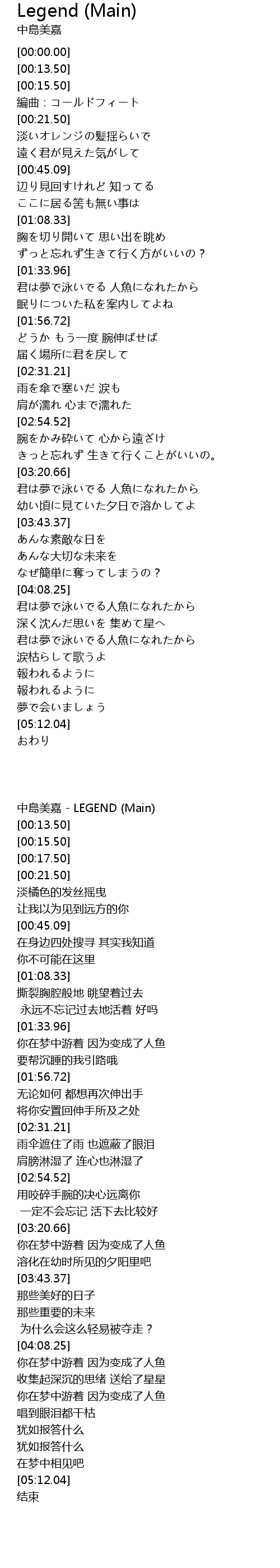 | [04:32.80] | 君は夢で泳いでる人魚になれたから |