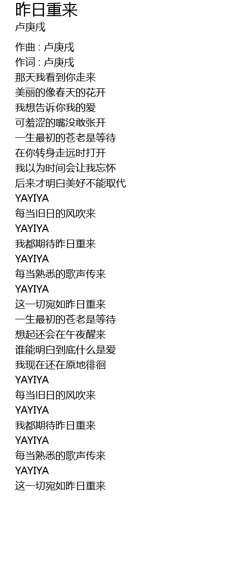 | wǒ dōu qī dài zuó rì chóng lái | |