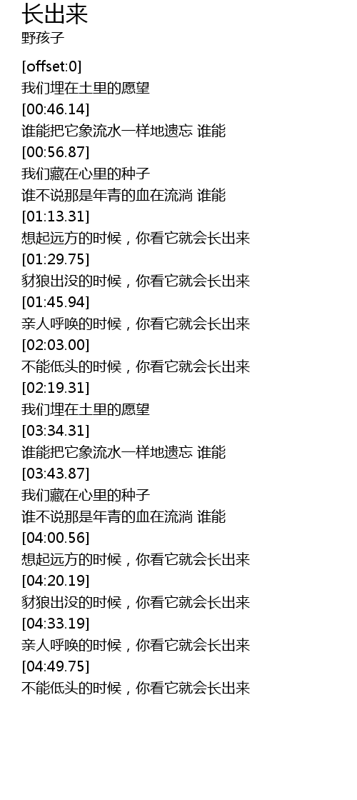 | [04:21.69] | 豺狼出没的时候,你看它就会长出来 |