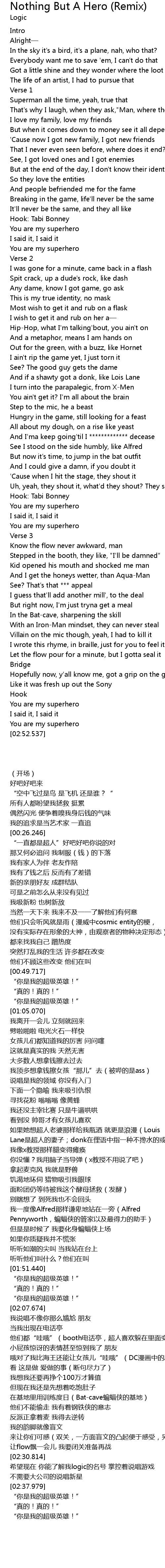 | [00:18.911] | In the sky it' s a bird, it' s a plane, nah, who that? |