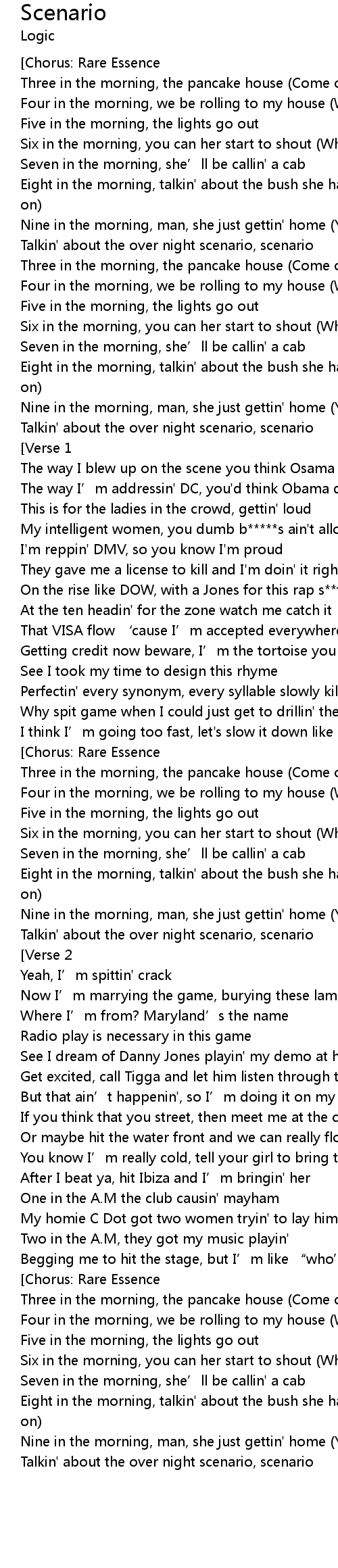 | [01:44.37] | Talkin' about the over night scenario, scenario |