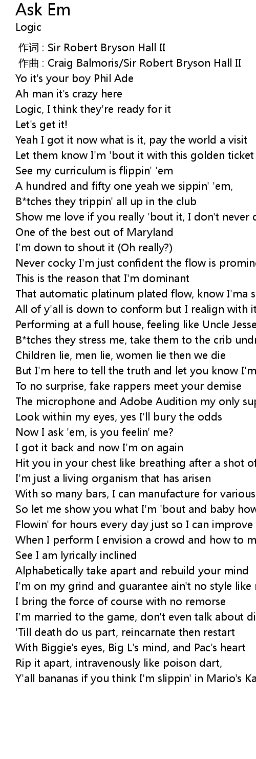 | [00:28.095] | Logic, I think they' re ready for it |