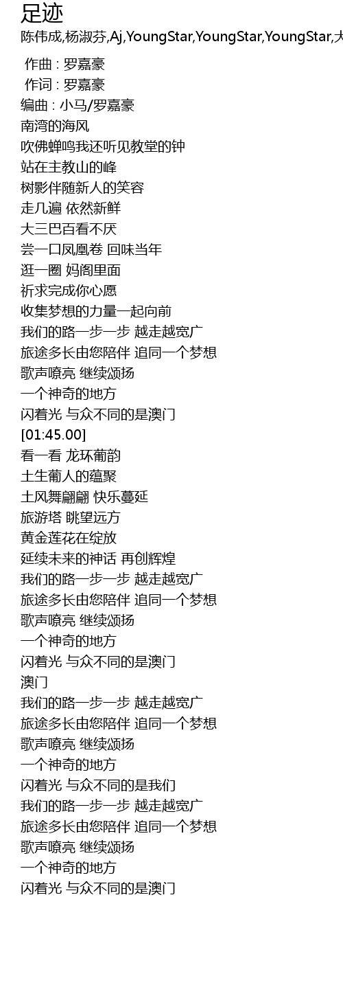 | [01:35.19] | 闪着光 与众不同的是澳门 |