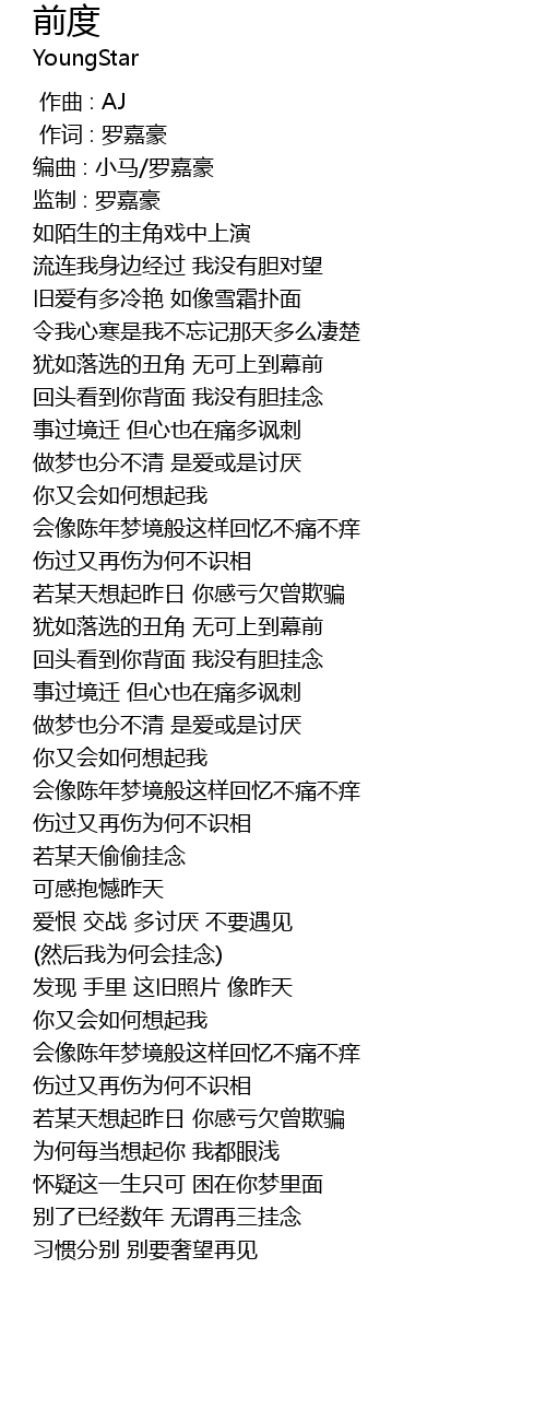 | [00:06.00] | 编曲 : 小马/罗嘉豪 |