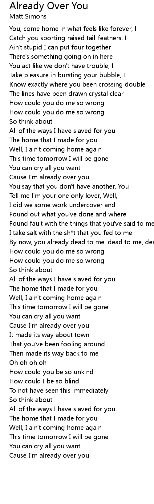 Cause I'm already over you |