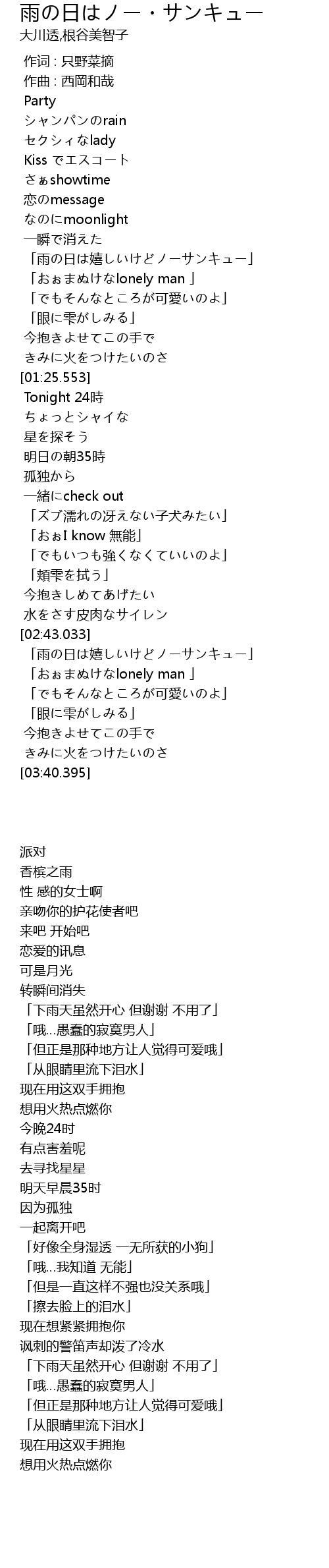| [03:04.178] | 「雨の日は嬉しいけどノーサンキュー」 |