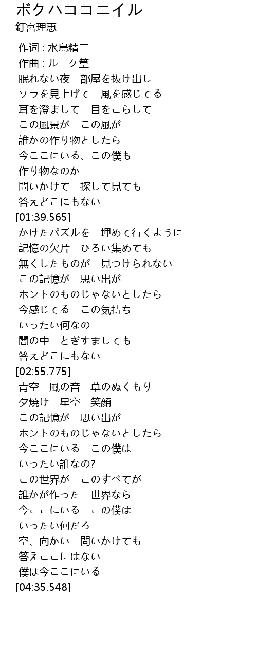 | [04:05.537] | 今ここにいる この僕は |
