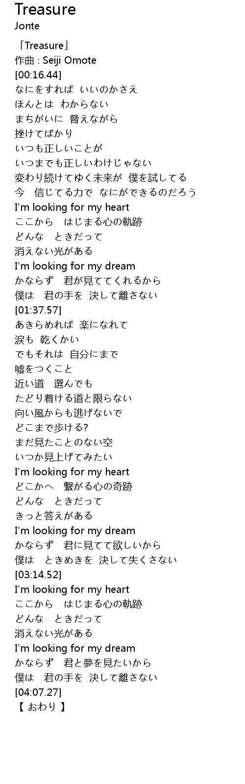 | [00:01.44] | 「Treasure」 |