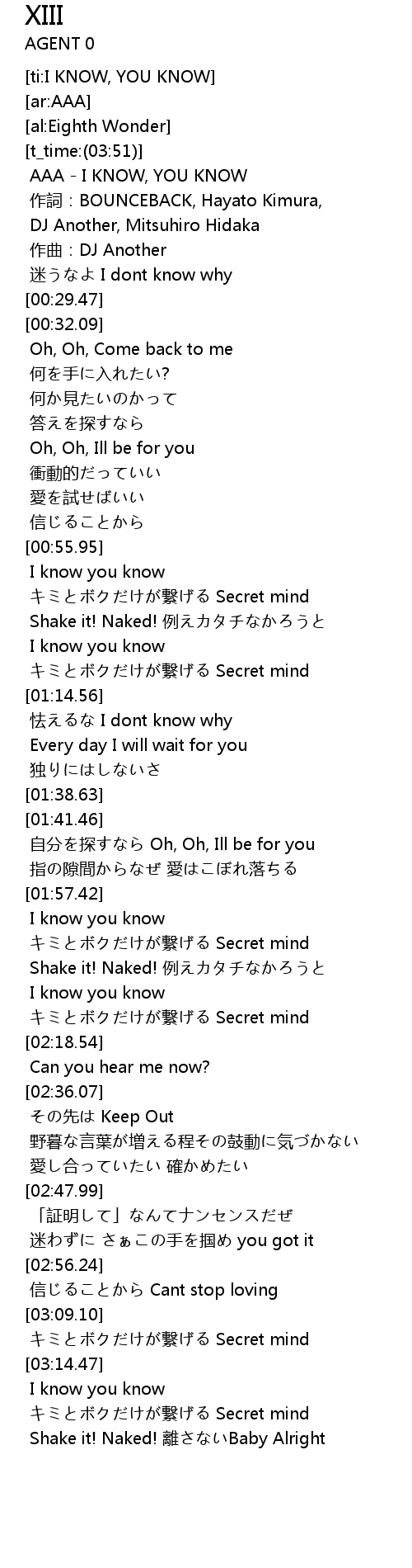 | [00:00.00] | AAA - I KNOW, YOU KNOW |