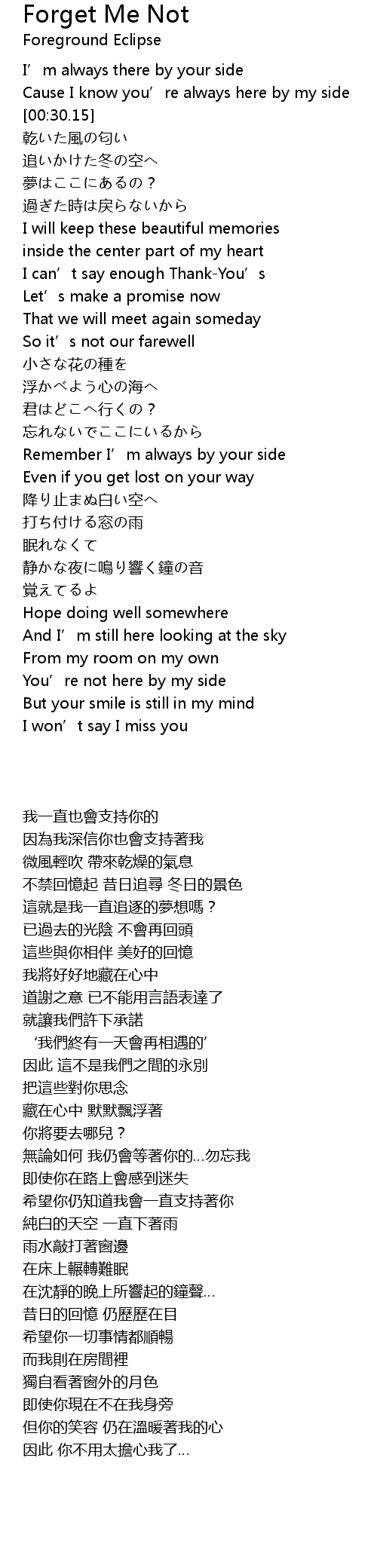 | [02:41.96] | Remember I' m always by your side |