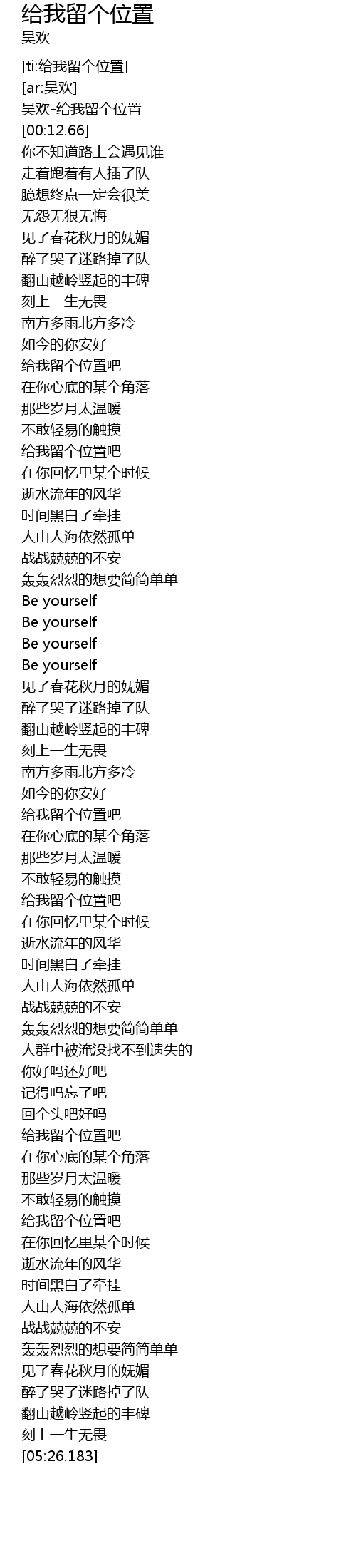 | [04:26.311] | gěi wǒ liú gè wèi zhì ba |