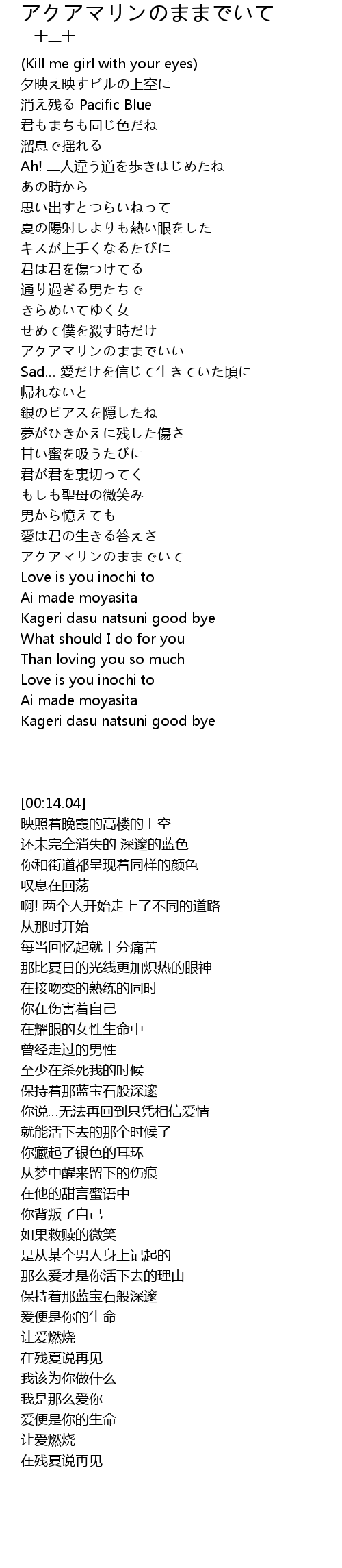 | [03:37.24] | アクアマリンのままでいて |
