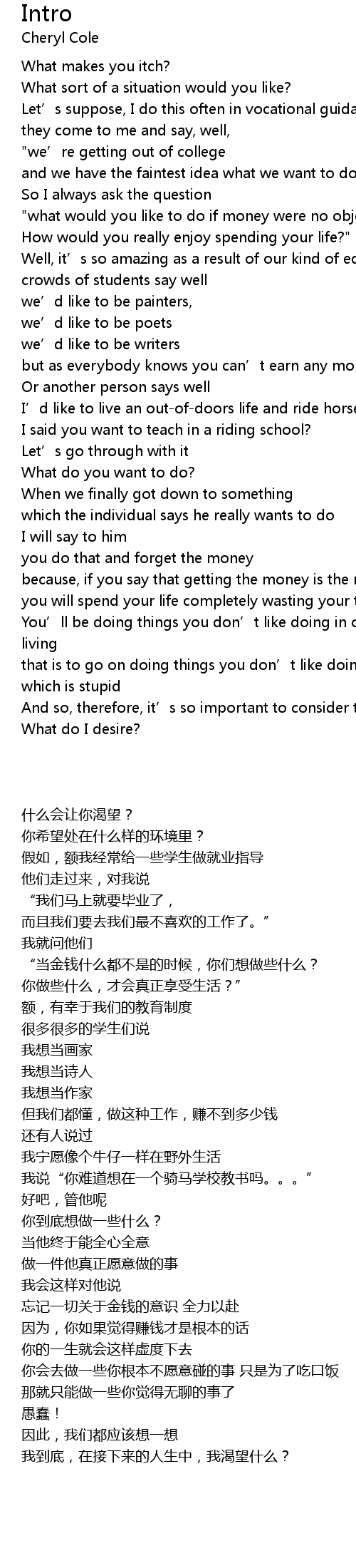 | [00:36.28] | "what would you like to do if money were no object? |