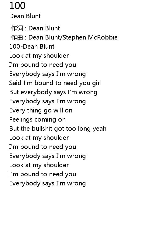 | [00:00.461] | 100-Dean Blunt |
