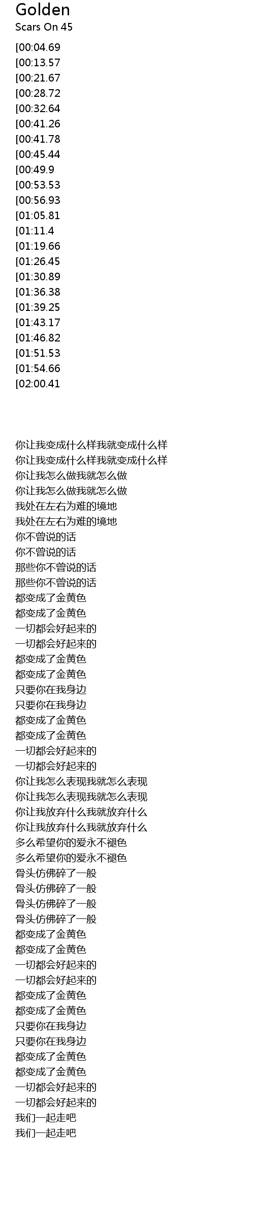 | [00:48.5][00:45.44] | together were golden |