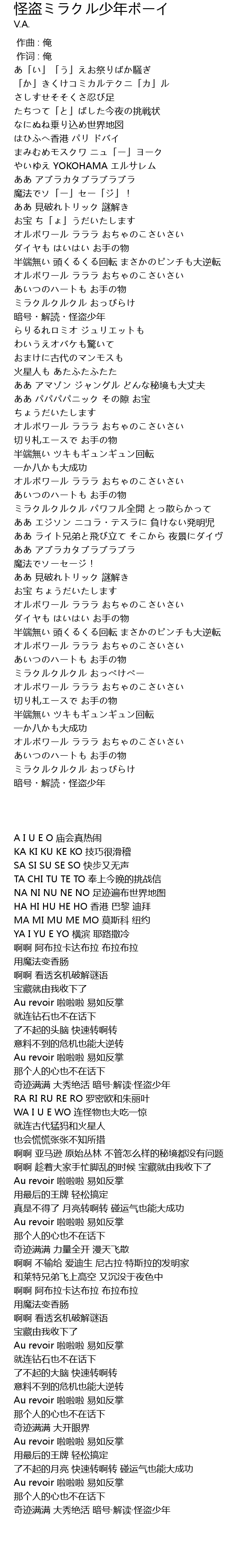 | [03:57.48] | ミラクルクルクル おっぴらけ 暗号・解読・怪盗少年 |
