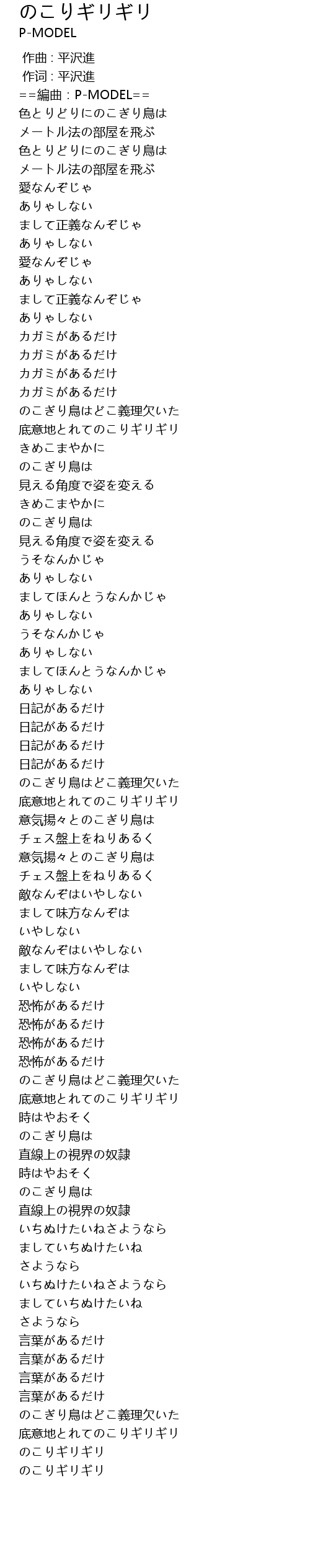 | [01:42.700] | のこぎり鳥はどこ義理欠いた |