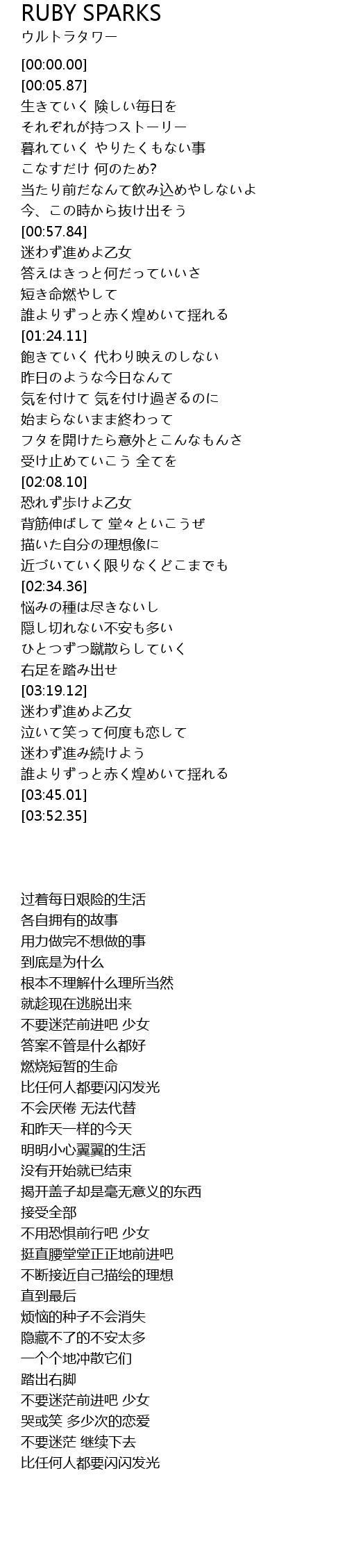 | [01:17.46] | 誰よりずっと赤く煌めいて揺れる |