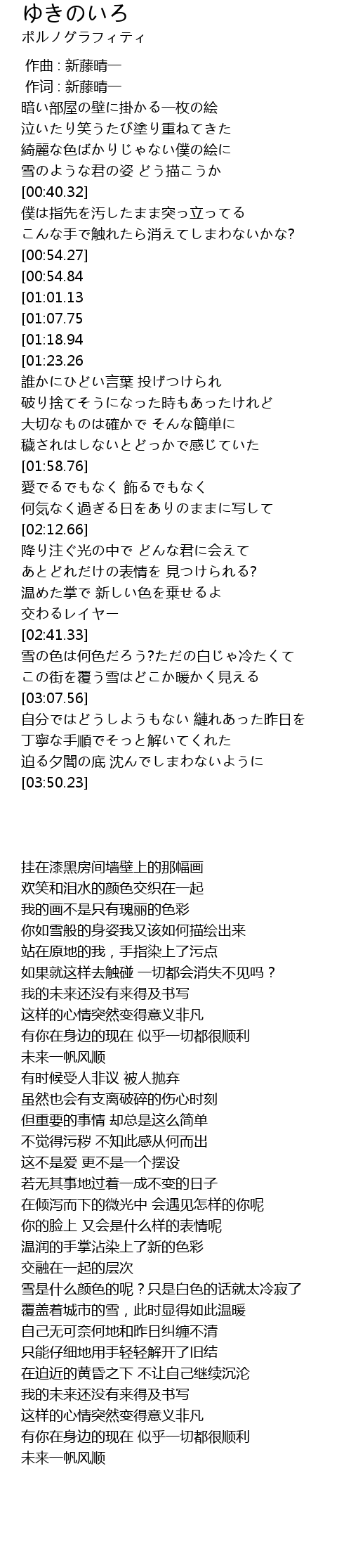 | [03:52.37][00:54.84] | 殴り書きのままだった僕の未来までも |