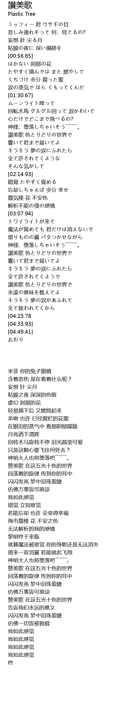 | [03:52.15] | 讃美歌 色とりどりの世界で |