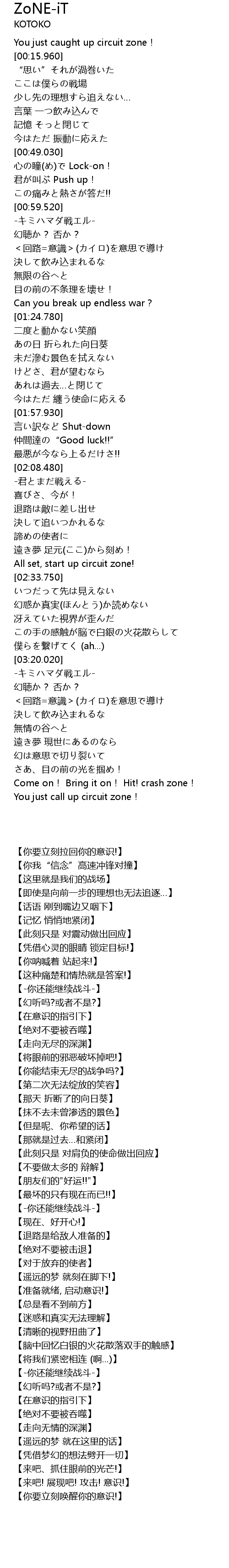 | [04:04.890] | Come on! Bring it on! Hit! crash zone! |