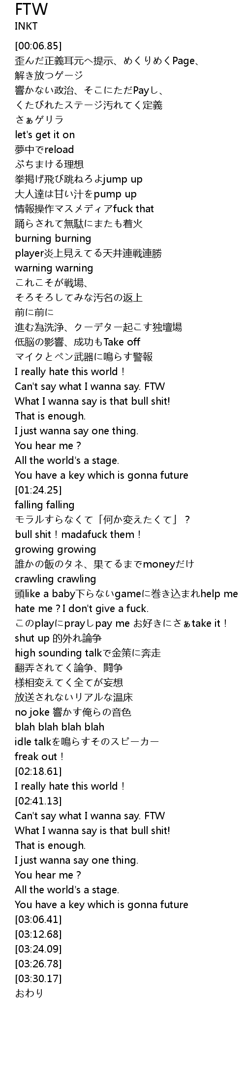 | [00:34.42] | 情報操作マスメディアfuck that |
