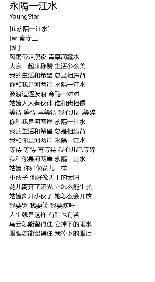 | [01:46.02] | 你和我是河两岸 永隔一江水 |
