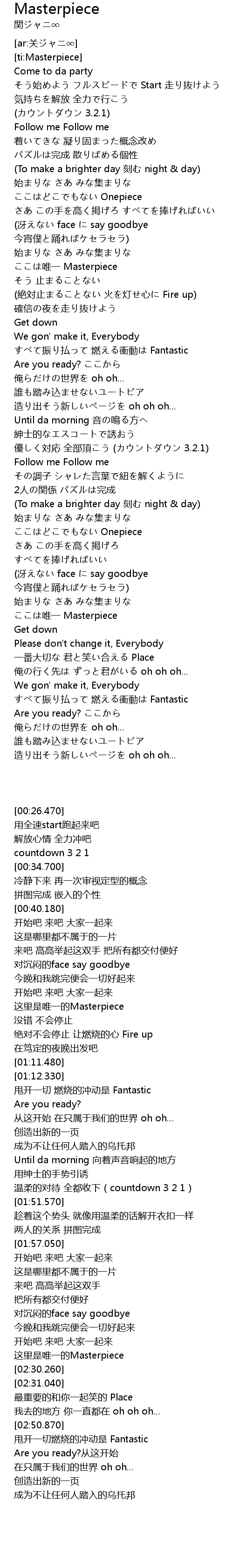 | [00:38.280] | パズルは完成 散りばめる個性 |