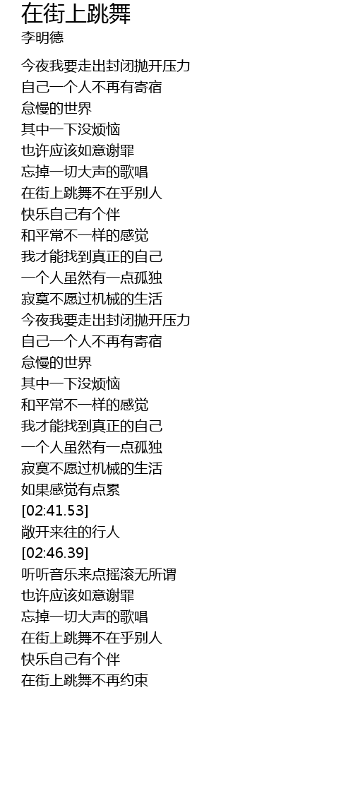 | [03:04.71] | 在街上跳舞不在乎别人 |