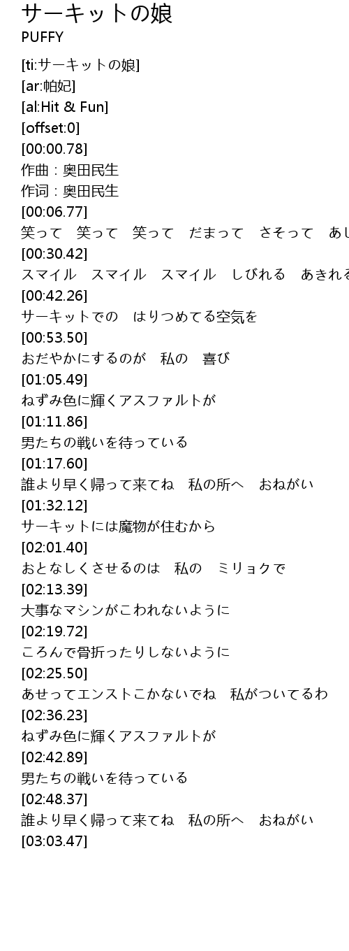 | [02:26.41] | あせってエンストこかないでね 私がついてるわ |