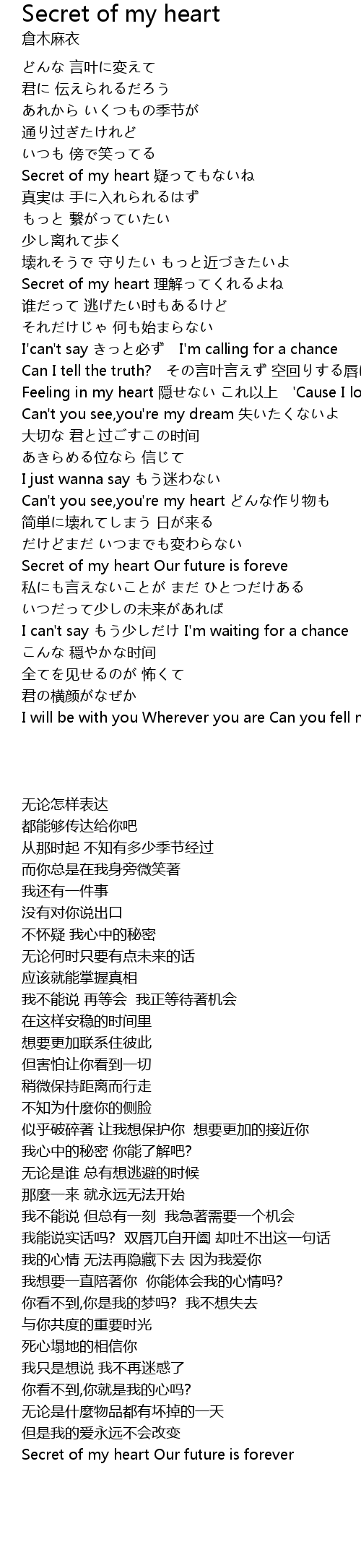 | [2:52.60] | I will be with you Wherever you are Can you fell my heart? |