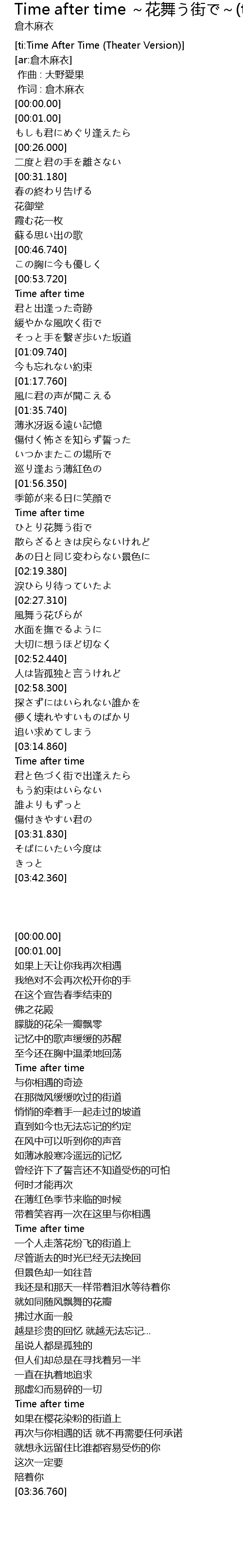 | [00:00.00] | 作词 : 倉木麻衣 |
